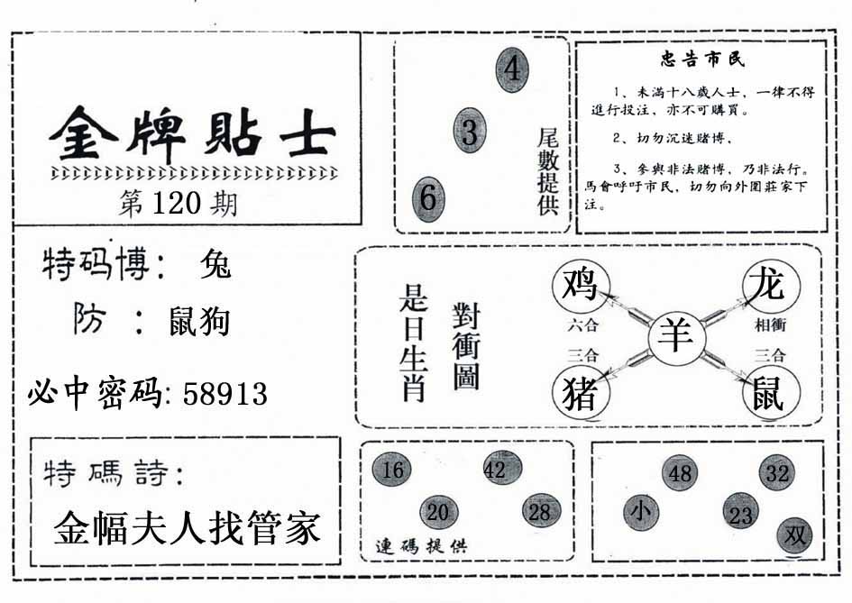 七肖 鸡虎马狗羊牛42