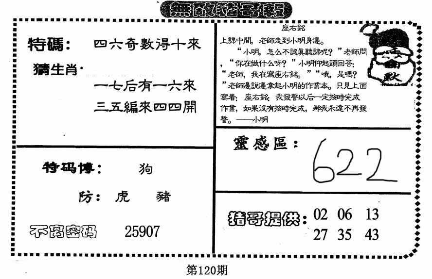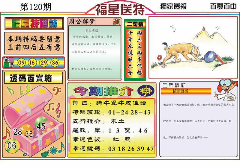 086期绿单08开:狗21