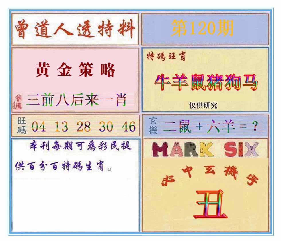 098期蓝大30开:羊24