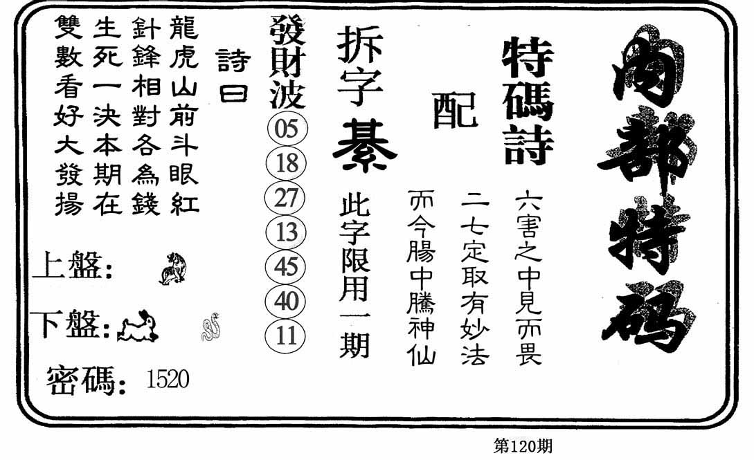 120期绿大72开:0000