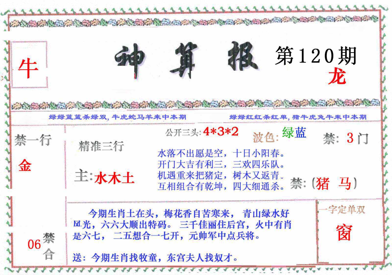 111期绿双73开:牛42